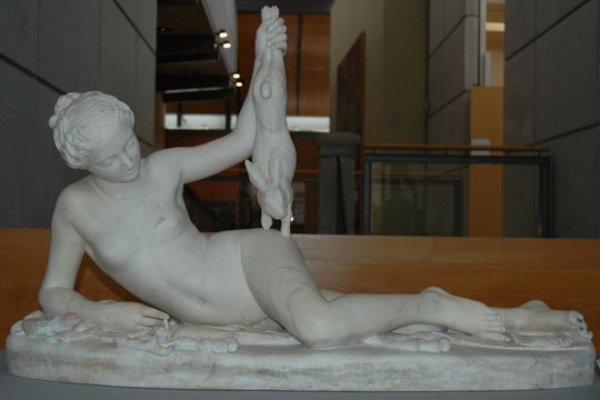 Il y a une sculpture surprenante, Jeune chasseresse au repos, 1830, de James Pradier. La jeune femme allongée tient un lapin dans une main. Le thème reste mystérieux, mais l’exécution est remarquable. Le musée a un modèle original en plâtre d’un Rodin, les trois ombres.