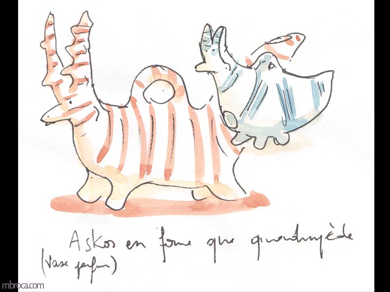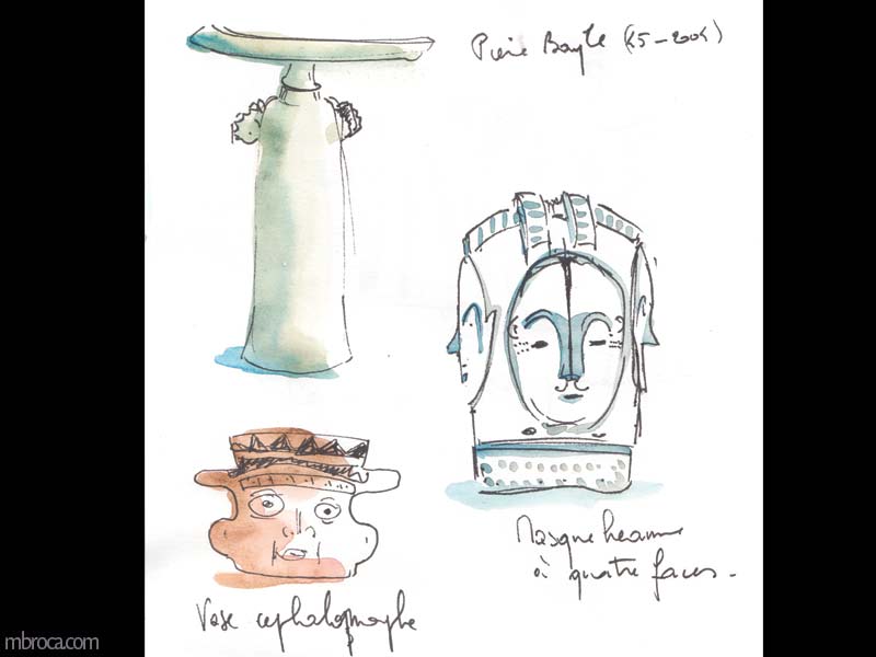 Ensuite, une belle collection archéologique, avec une momie égyptienne, des stèles, des statuettes et beaucoup de poteries antiques. J’ai passé un certains temps dans ces salles à dessiner dans mon carnet.
