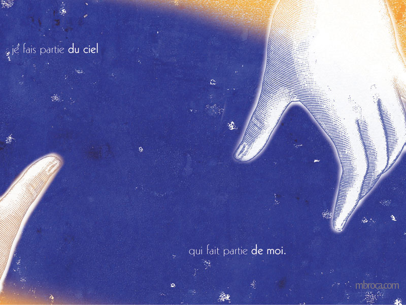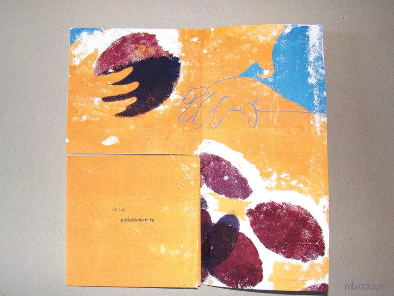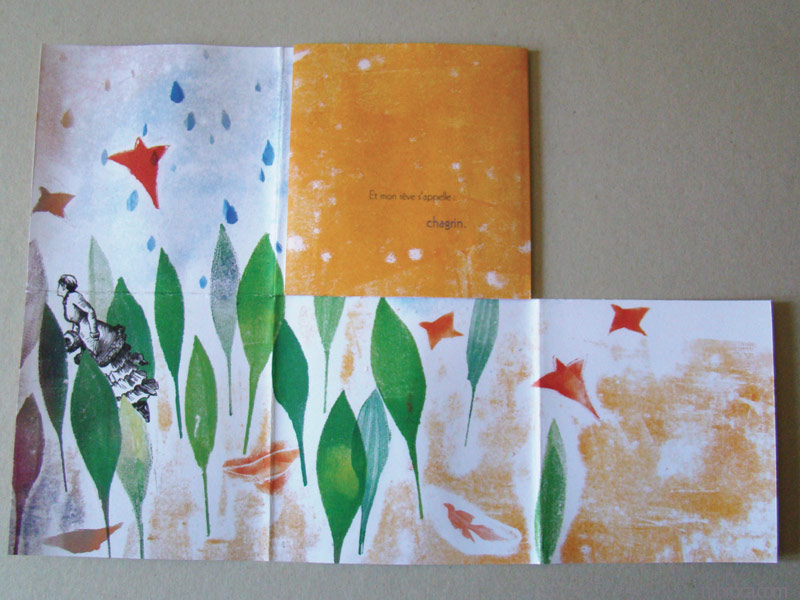 J’ai pu continuer mon travail sur la poésie en illustrant un recueil de poèmes pour adultes : Dépaysés, d’Alain Boudet, aux éditions Soc et Foc. J’ai continué dans le même état d’esprits mes illustrations. C’est un axe de travail que je compte poursuivre, en poésie ou sous forme de livre d’artiste.