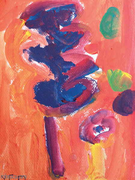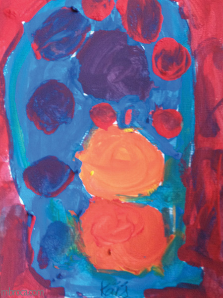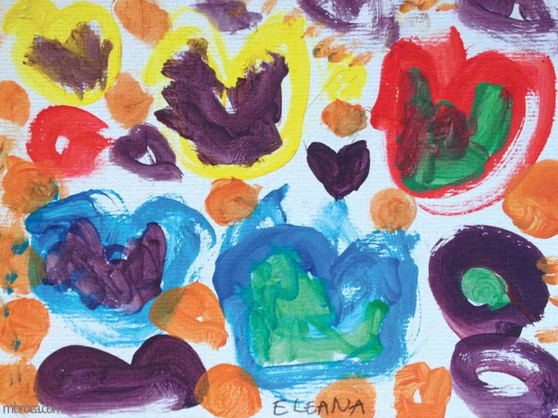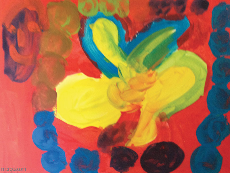 Ils avaient à réaliser un tableau pour la fête des mères ou des pères au choix. Ils ont eu le temps de réaliser un croquis avant de passer à la peinture. Certains ont vraiment reproduit le croquis, d’autres seulement une partie. Souvent il est difficile à l’enfant de reproduire à la même échelle surtout en passant du crayon au pinceau.