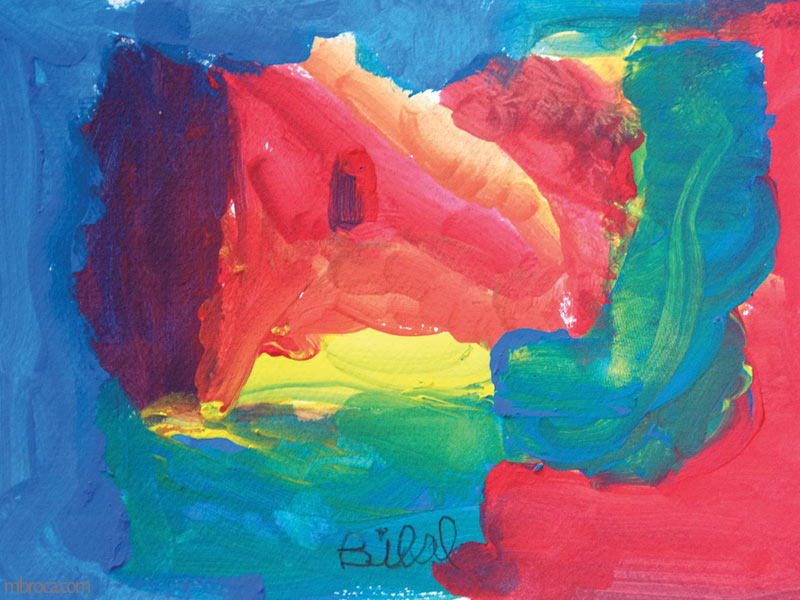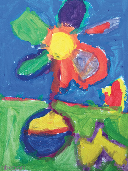 Le retour sur la première séance était positif, et j’ai pu enchaîner avec un autre travail, la réalisation d’un petit tableau à partir des trois couleurs primaires.