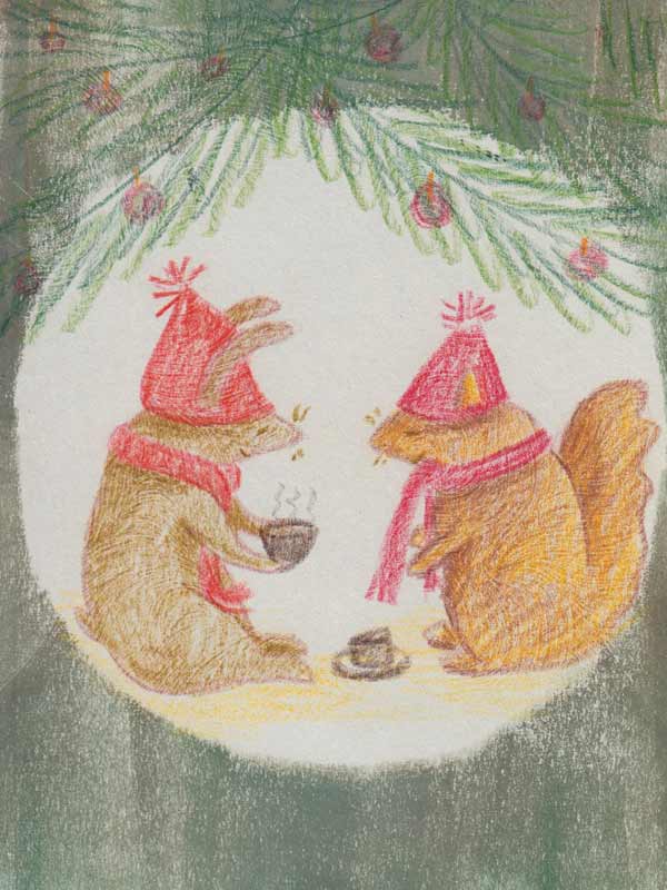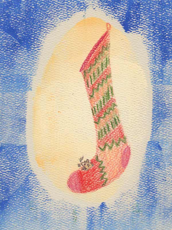 Cette année, en plus de partager ces petites scènes avec vous, je relève un défi : une carte de noël quotidienne. J’ai décidé de travailler avec la technique des monotypes (impression unique) et des crayons de couleurs. J’ai passé une matinée à imprimer des fonds à l’aide de pochoirs, puis pendant plusieurs jours j’ai décoré les cartes.