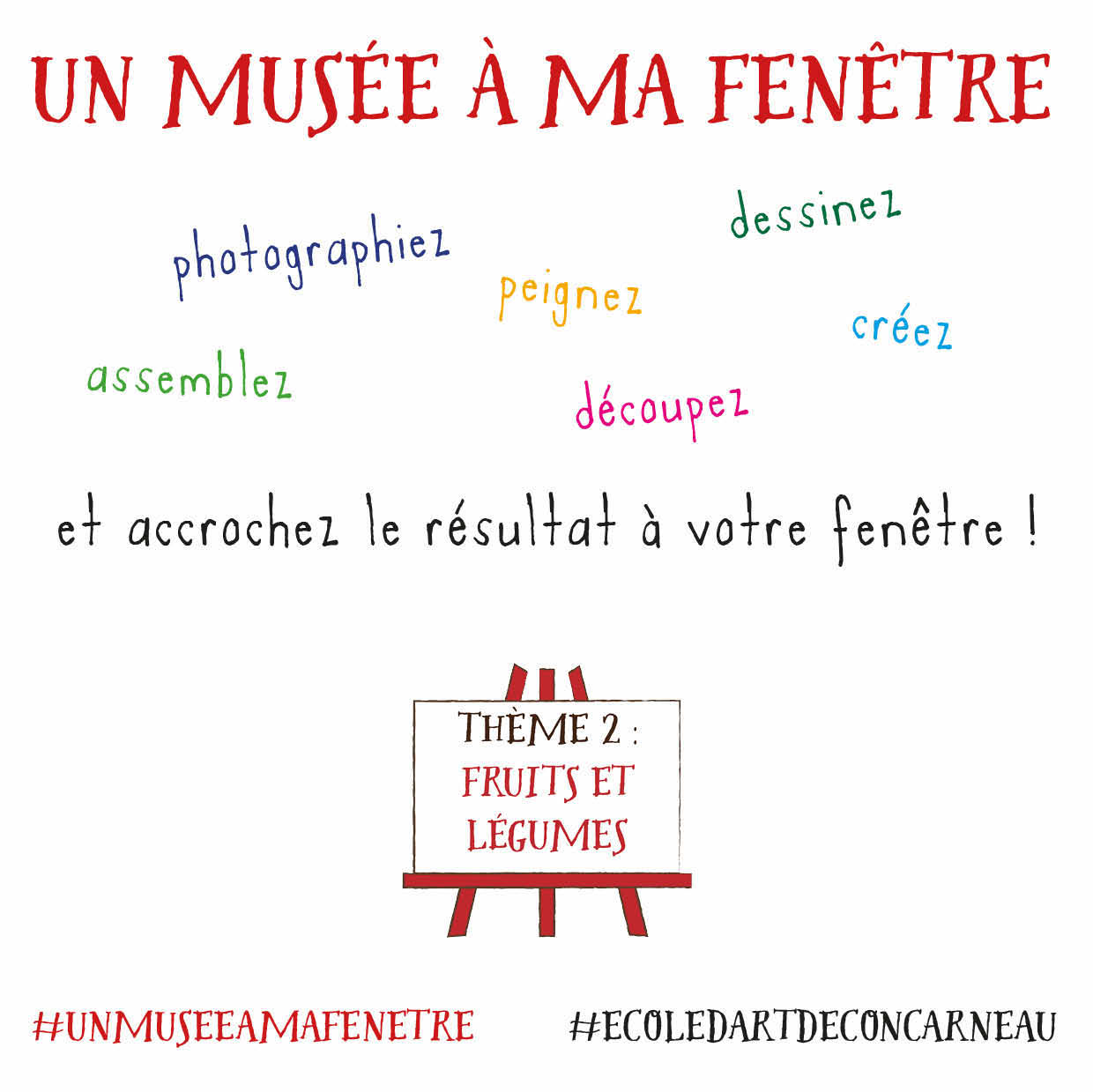 Vous pouvez partager sur les réseaux sociaux : #unmuseeamafenetre et #ecoledartdeconcarneau et suivre le défi sur le compte Instagram et Facebook de l’école d’art de Concarneau.