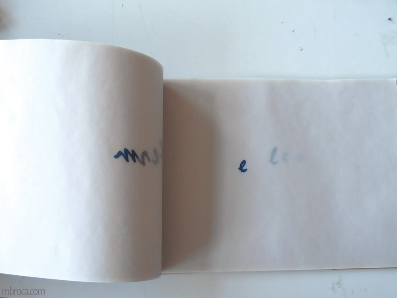 Le texte est une citation de Joseph Joubert trouvé dans une papillote. Page après page le texte apparaît puis disparaît, chaque lettre étant écrite sur une feuille de papier calque.