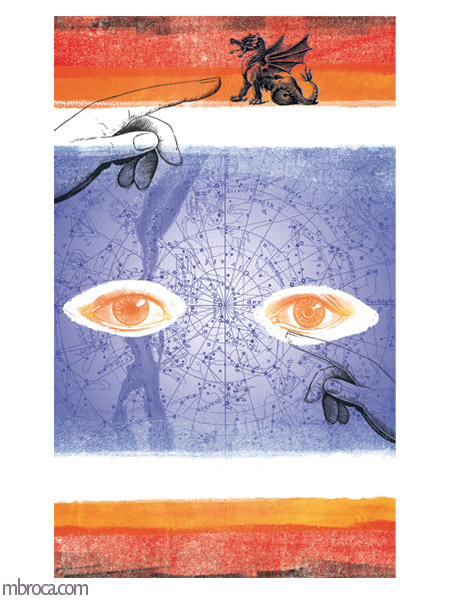 Deux couleurs, bleu et orange, auxquelles je reste fidèle dans mon travail. Ce livre illustre visuellement le travail de notre cerveau à chaque lecture. En effet, lorsque celui-ci lit une lettre il devine déjà les suivantes. C’est aussi un appel à la mémoire, important si on ferme les yeux, comme nous l’indique la phrase.