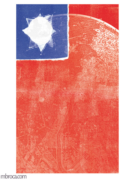 Les couleurs utilisées sont le rouge, le jaune, le bleu, le noir et le blanc. Ce sont les couleurs de l’ancien drapeau taïwanais, le drapeau à cinq couleurs. Chaque couleur représente un des peuples qui a fondé la Chine. Ce drapeau résume les propos du livre : la multiplicité et la différence qui engendrent un tout, un pays, une personne.
