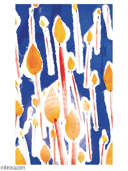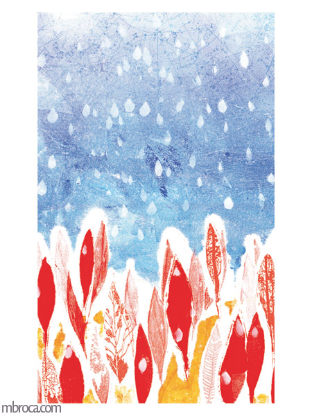 Chaque feuille se déplie afin de laisser au lecteur le temps de découvrir le texte. Cela met en avant le rythme du texte. L’image apparaît à la fin, une fois le texte lu en entier. Ce n’est pas une illustration mais un élément complémentaire au texte.