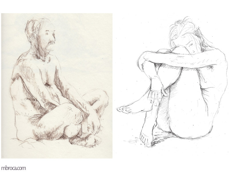 Dessins réalisés à l’école d’arts plastique du grand Narbonne, lors de cours dispensés par Annie Segarra puis par Henry Lacotte. Merci aux modèles, Céline, Pascal, Annette, et Pascal.