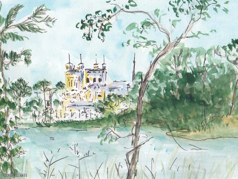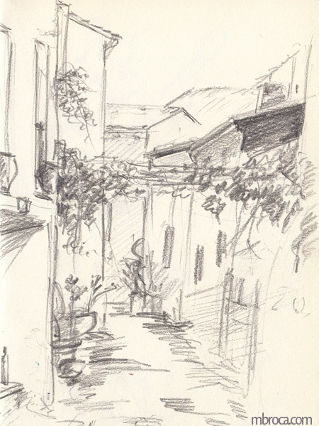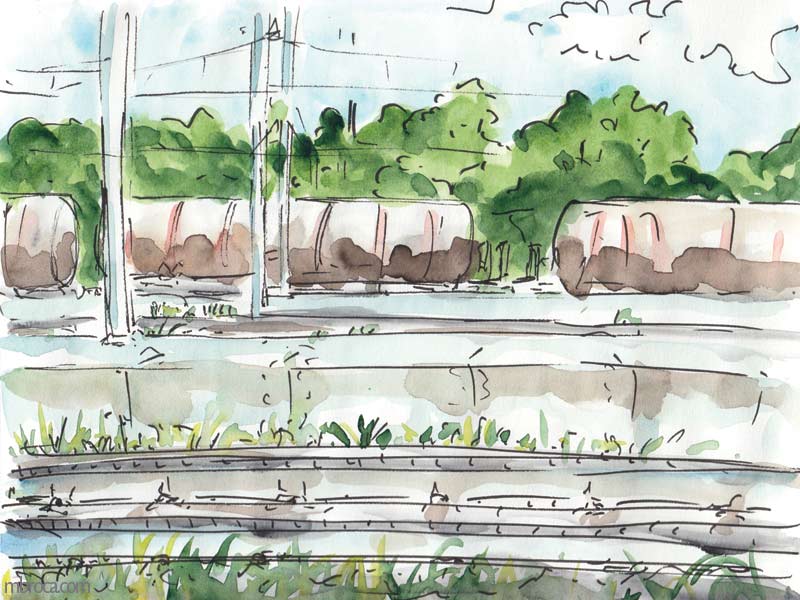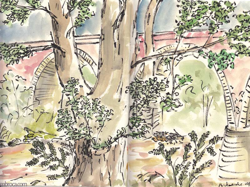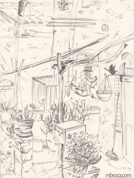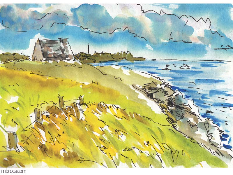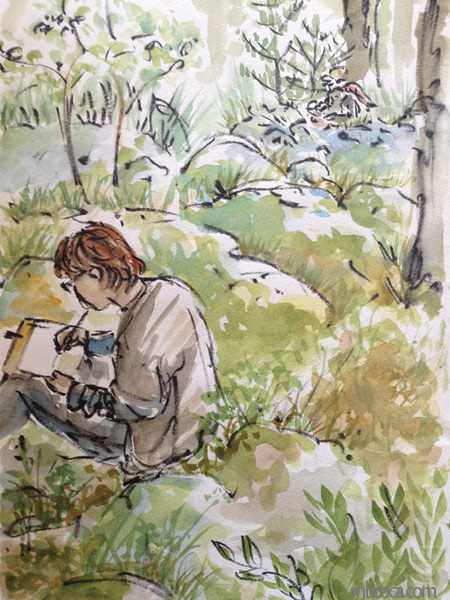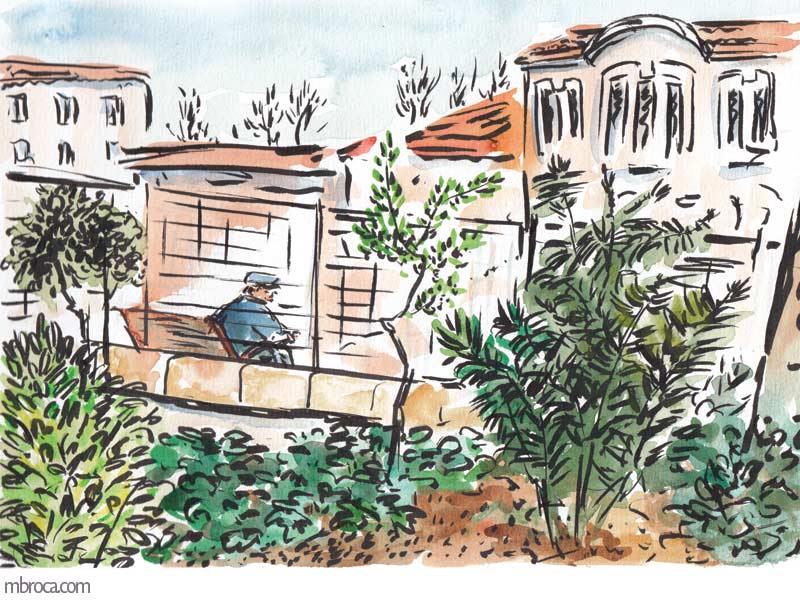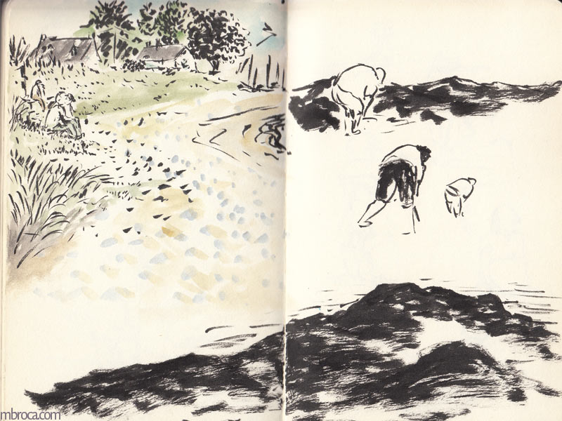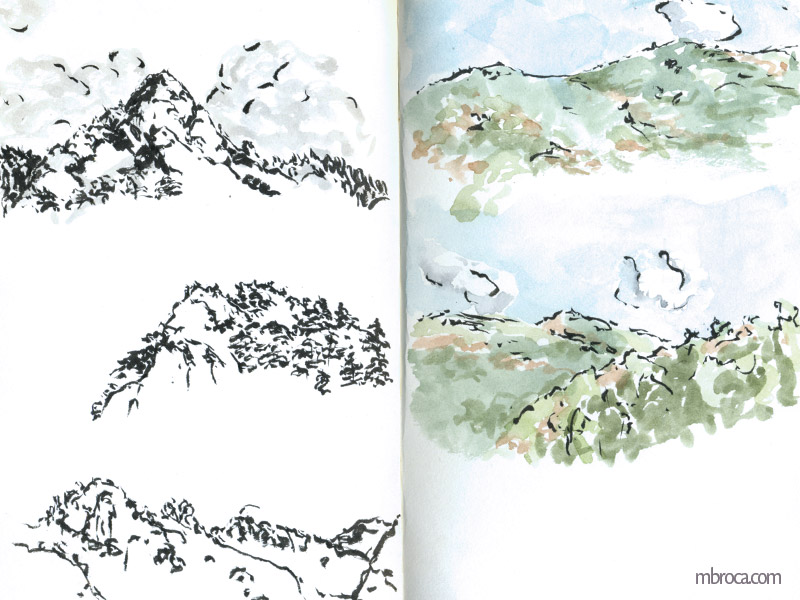 Croquis sur le vif, cependant j’en ai retravaillé certains après (crayon, aquarelle, encre, photographie …).