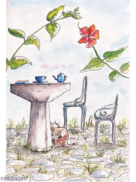 Je m’inspire de croquis, mais je puise aussi dans mon imagination pour créer ces images narratives. Selon mon inspiration elles seront le point de départ d’une œuvres plus grande, ou elles resteront uniques.