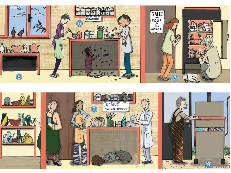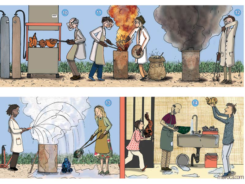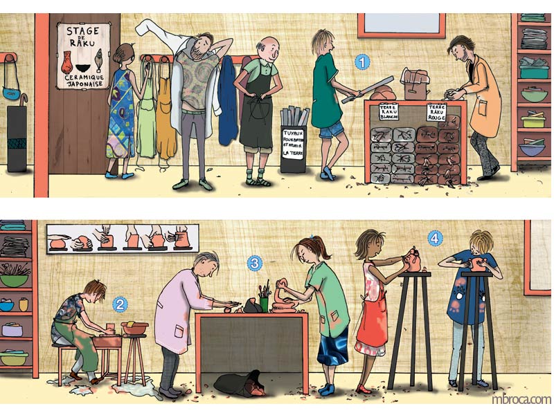 J’ai réalisé cette frise pour expliquer la technique de la céramique japonaise raku, car une image vaut bien des mots, encre et infographie.
